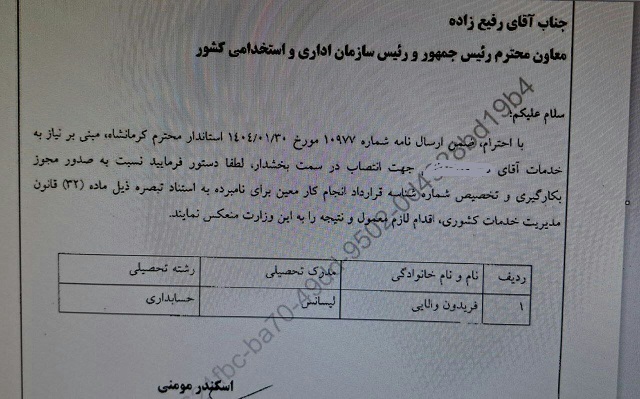 فشار رنجبر نماینده مجلس شورای اسلامی برای انتصاب افراد فامیل در معاونت آموزش و پرورش ناحیه 3 با زور و فشار بر دکتر محبی مدیرکل محترم....